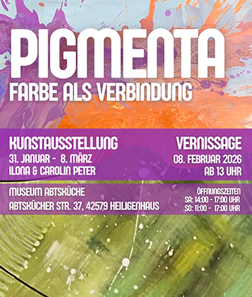 Neben ihrer eigenen künstlerischen Arbeit haben Ilona Peter und Carolin Peter im Juli des vergangenen Jahres gemeinsam die Kreativschule Klecksfabrik Heiligenhaus gegründet. Mit der Klecksfabrik haben sie einen offenen Raum geschaffen, in dem kreative Prozesse, künstlerische Bildung und freier Ausdruck im Mittelpunkt stehen. Hier geben sie ihre Erfahrungen weiter und ermutigen Menschen jeden Alters, Farbe, Form und Material ohne Scheu zu erkunden. pigmenta macht sichtbar, wie unterschiedlich Farbe eingesetzt werden kann – und wie sie dennoch verbindet: zwei Künstlerinnen, zwei Handschriften, eine gemeinsame Leidenschaft für Kunst, Experiment und Ausdruck.