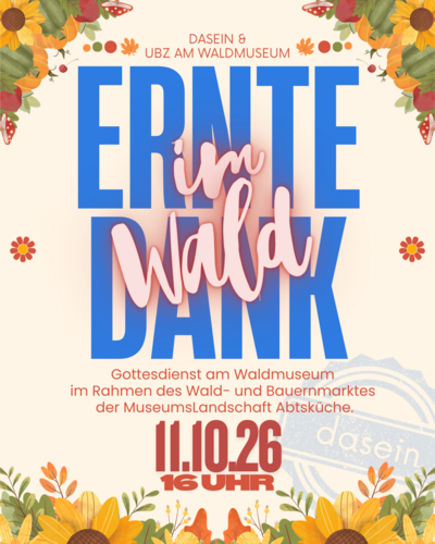 dasein und das UBZ am Waldmuseum laden am 11. Oktober um 16 Uhr herzlich zu 𝓔𝓻𝓷𝓽𝓮𝓭𝓪𝓷𝓴 𝓲𝓶 𝓦𝓪𝓵𝓭 ein!