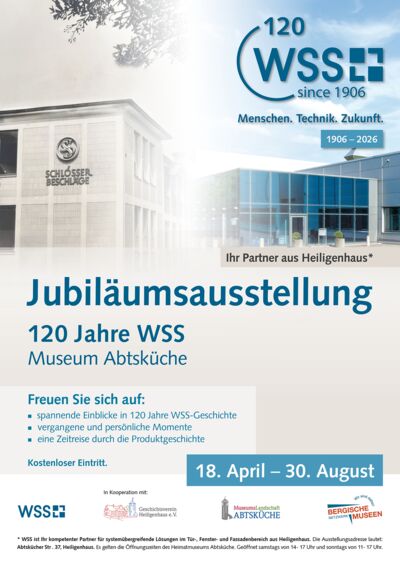 Seit 120 Jahren steht die Firma Wilh. Schlechtendahl & Söhne GmbH & Co. K.G. für Menschen, Technik und Zukunft. Dieses besondere Jubiläum feiert das Unternehmen mit einer Jubiläumsausstellung im Museum Abtsküche.
