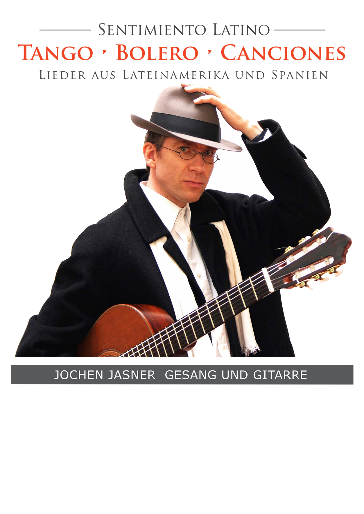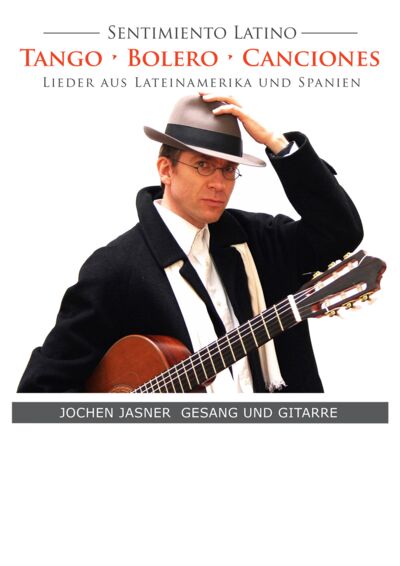 Lieder aus Lateinamerika und Spanien – mit dem Düsseldorfer Sänger und Gitarristen Jochen Jasner geht es auf eine mitreißende musikalische Reise durch Argentinien, Kuba, Puerto Rico, Brasilien, Ecuador und das spanische Andalusien. Jasner singt Tango-Klassiker des legendären Tangosängers Carlos Gardel und kubanische Bolero-Evergreens. Außerdem Bossa Nova, Rumba, Milonga und poetische Balladen. Bewegende Lieder, zu denen er auch einiges (auf Deutsch) zu erzählen weiß.