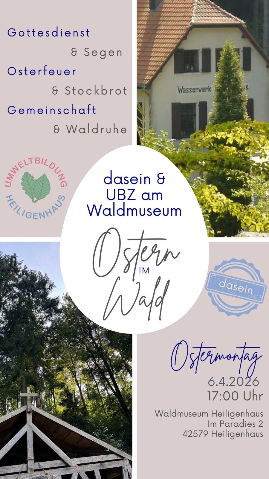 Gottesdienst & Segen, Osterfeuer & Stockbrot, Gemeinschaft & Waldruhe