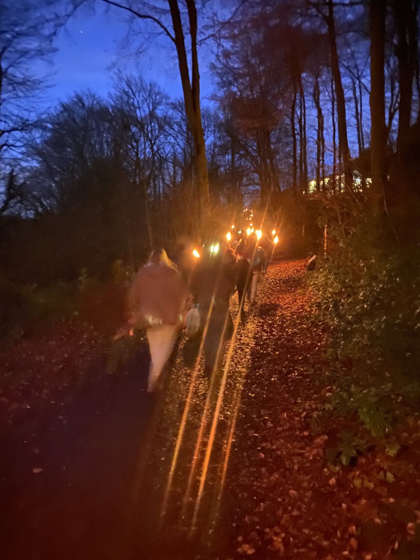 Gemeinsam geht es zum Waldmuseum, um dort den Lichterzauber rund um das neue „Wirtshaus zum träumenden Drachen“ zu genießen. Der Rückweg zum UBZ wird mit Fackeln beleuchtet sein. Dort erwartet die Besucher*innen ein Lagerfeuer und heißer Punsch zum Aufwärmen. In gemütlicher Runde ist dann Zeit für entspannte Weihnachts-Atmosphäre, Stockbrot und Weihnachtsliedersingen am Feuer.